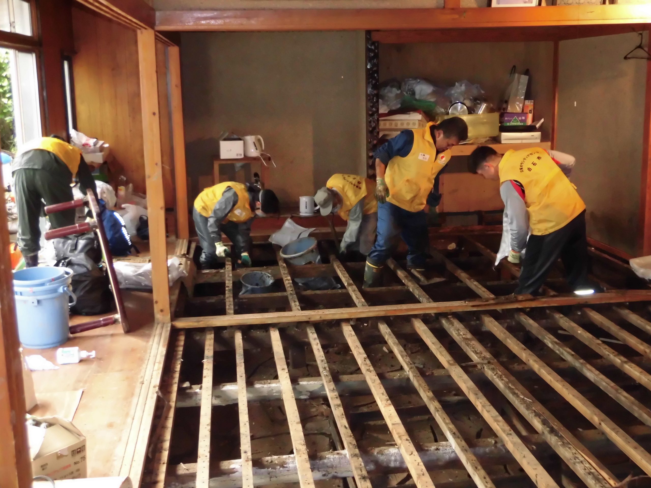 地震や風水害が起きた場合には、家の片づけや掃除、床下の泥だし、家財や畳等の運び出しなど被災地の暮らしのニーズを収集します。